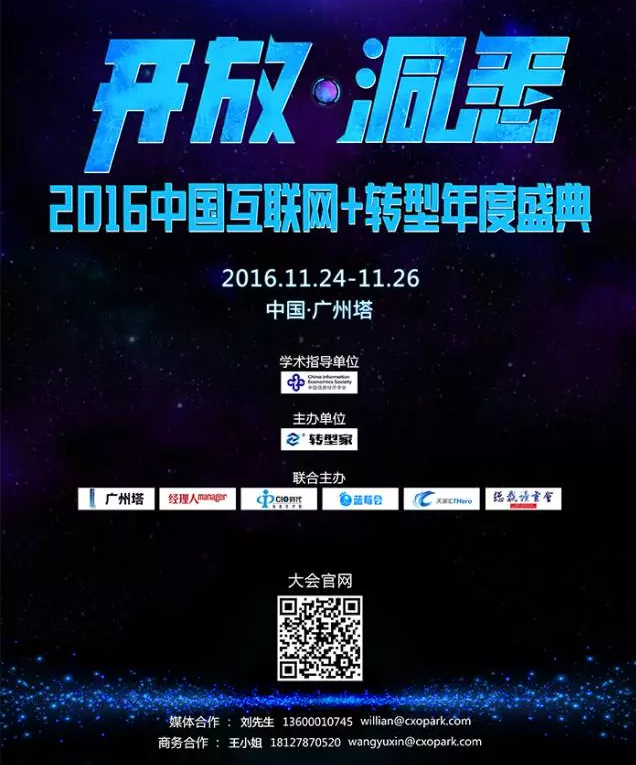 無(wú)論處于任何一個(gè)時(shí)代,挑戰(zhàn)與機(jī)遇總是在企業(yè)的發(fā)展中相生相隨。新形勢(shì)下面臨的新問(wèn)題,敦促著企業(yè)必須努力尋找新的解決途徑。在這一時(shí)代背景下,由轉(zhuǎn)型家主辦,廣州塔、經(jīng)理人、CIO時(shí)代信息化學(xué)院、藍(lán)莓會(huì)、天英匯、總裁讀書(shū)會(huì)聯(lián)合主辦的“2016年中國(guó)互聯(lián)網(wǎng)+轉(zhuǎn)型年度盛典”即將于11月24日至26日在廣州塔舉行。