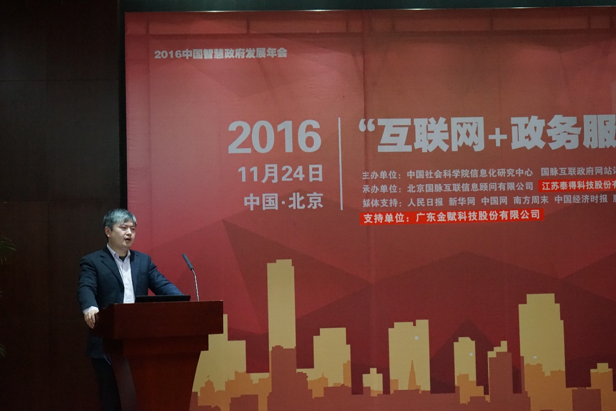 2016年11月24日,2016中國智慧政府發(fā)展年會在北京召開,本次會議以"探索現(xiàn)代政府治理新模式,共論互聯(lián)網(wǎng)+政務(wù)創(chuàng)新方向"為主題,由中國社會科學(xué)院信息化研究中心、國脈互聯(lián)政府網(wǎng)站評測研究中心聯(lián)合主辦,北京國脈互聯(lián)信息顧問有限公司、無錫泰得利通軟件科技有限公司承辦,共有來自全國部委、省、市、區(qū)縣電子政務(wù)主管領(lǐng)導(dǎo)、行業(yè)專家、企業(yè)代表、主流媒體600余人參會。