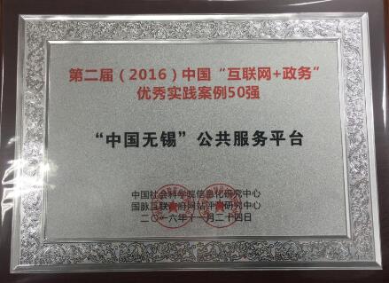 "中國無錫"公共服務(wù)平臺入選中國"互聯(lián)網(wǎng)+政務(wù)"優(yōu)秀實踐案例50強