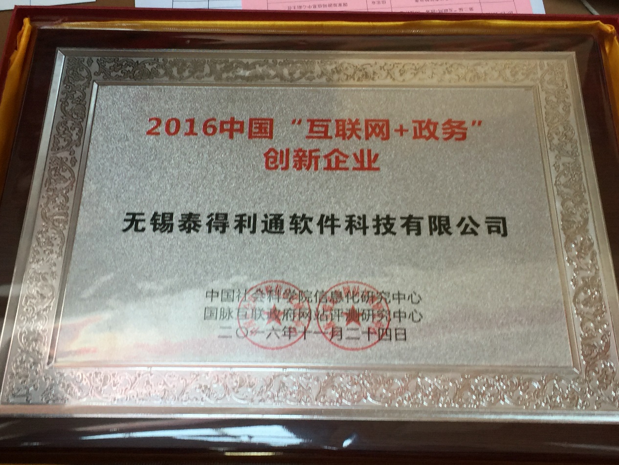 泰得利通榮獲2016中國"互聯(lián)網(wǎng)+政務(wù)"創(chuàng)新企業(yè)