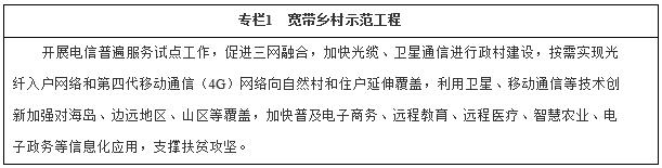 (一)構建網(wǎng)絡強國基礎設施。深入推進“寬帶中國”戰(zhàn)略,加快構建高速、移動、安全、泛在的新一代信息基礎設施。