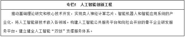 (五)發(fā)展人工智能。培育人工智能產業(yè)生態(tài),促進人工智能在經(jīng)濟社會重點領域推廣應用,打造國際領先的技術體系。