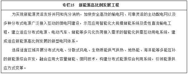 (二)推動新能源產業(yè)發(fā)展。加快發(fā)展先進核電、高效光電光熱、大型風電、高效儲能、分布式能源等,加速提升新能源產品經(jīng)濟性,加快構建適應新能源高比例發(fā)展的電力體制機制、新型電網(wǎng)和創(chuàng)新支撐體系,促進多能互補和協(xié)同優(yōu)化,引領能源生產與消費革命。到2020年,核電、風電、太陽能、生物質能等占能源消費總量比重達到8%以上,產業(yè)產值規(guī)模超過1.5萬億元,打造世界領先的新能源產業(yè)。