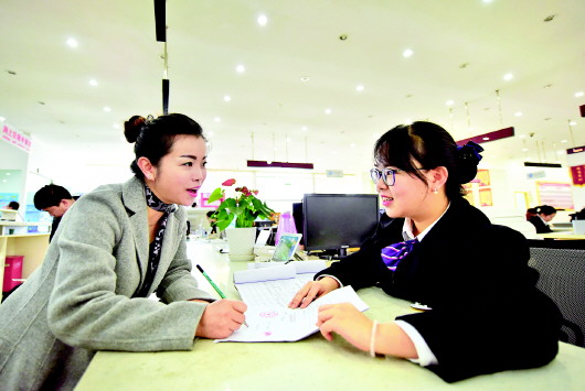 ▲新區(qū)政務(wù)服務(wù)中心工作人員指導(dǎo)群眾辦理業(yè)務(wù)