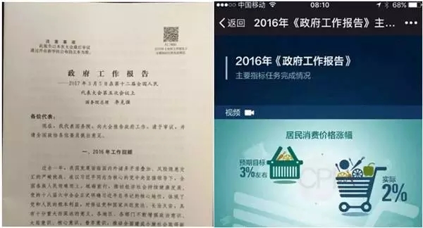 兩會期間,官媒都憋足了勁發(fā)出大招,從光明網的網紅設備“鋼鐵俠”,到央廣推出的模擬朋友圈H5和人民日報刷屏的“兩會喊你加入群聊”H5,這屆官媒真的挺會玩,全方位體現出了互聯(lián)網思維。 與此同時,二維碼也上了政府工作報告的首頁。用數據可視化的多媒體形式,將報告里的內容直觀呈現,也方便分享傳播。