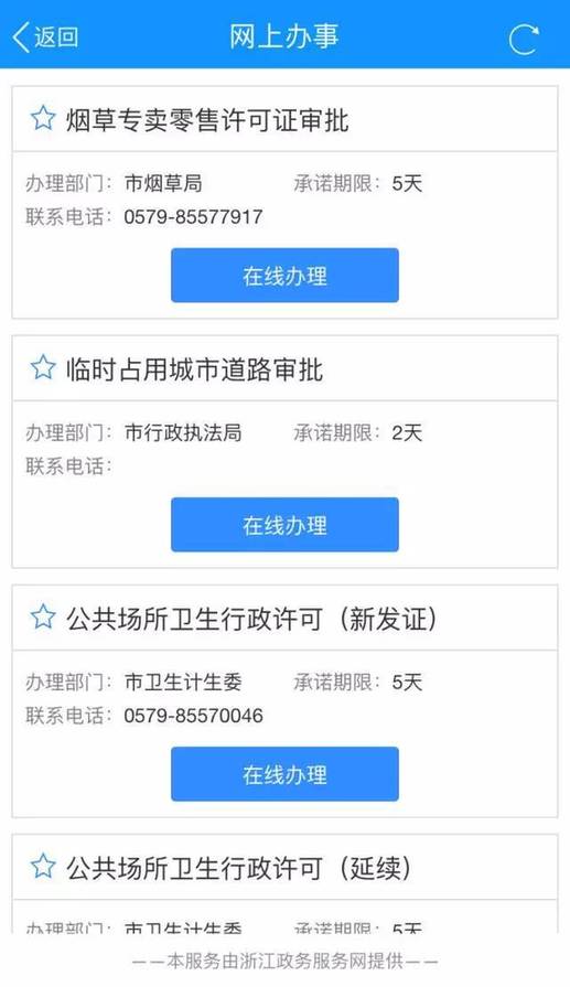 目前,浙江政務(wù)服務(wù)網(wǎng)APP義烏站“網(wǎng)上辦事”服務(wù)可提供煙草專賣零售許可證審批、臨時占用城市道路審批、公共場所衛(wèi)生行政許可、汽車租賃經(jīng)營備案等14項網(wǎng)上直辦事項,更多其他事項正在加緊梳理中。