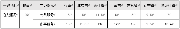 在線服務(wù)方面,全國平均績效得分為17.89分,得分率為77.85%,北、浙、上平均績效得分為19.7分,東北區(qū)域省級(jí)政府在線服務(wù)平均績效得分為18.8分,由此可以看出,東北區(qū)域在線服務(wù)建設(shè)和發(fā)展水平處于上游,政府單位對(duì)在線服務(wù)重視度較好,例如遼寧省建成網(wǎng)上審批大廳,在線服務(wù)得分率達(dá)63.33%,相比去年有明顯提升??偟膩碚f,東北區(qū)域在辦事服務(wù)指標(biāo)得分情況較好,但公共服務(wù)指標(biāo)得分較第一梯隊(duì)還有較大差距。