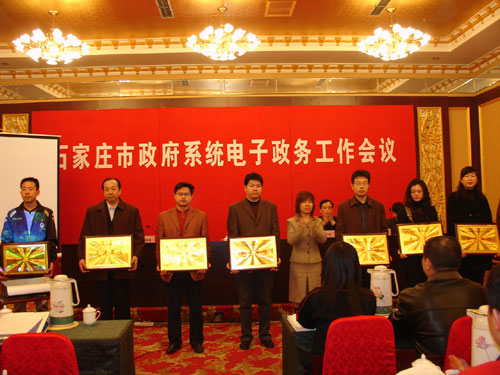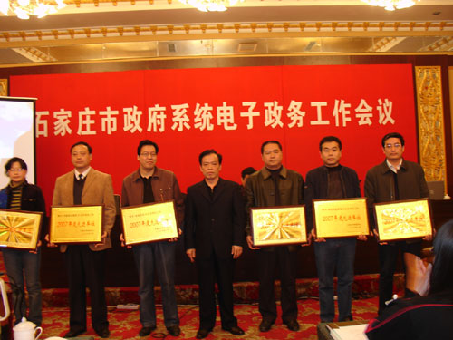 3月19日上午,市信息中心在銀河賓館召開了全市政府系統(tǒng)電子政務(wù)會議,參加會議的有,各縣(市)區(qū)和市政府各部門、有關(guān)單位負(fù)責(zé)信息化工作的主任、處(科長)及技術(shù)人員,共計200余人。會議由市政府副秘書長、市信息中心主任范憲林同志主持,會上,市信息中心副主任黃德偉同志宣讀了《2007年度市政府系統(tǒng)電子政務(wù)工作先進(jìn)個人和先進(jìn)單位的通報》,并舉行了頒獎儀式;市信息中心網(wǎng)站處處長王梅林同志就2007年度石家莊市政府網(wǎng)站測評情況進(jìn)行了說明,并發(fā)布測評結(jié)果;市信息中心副主任安才良同志總結(jié)了2007年全市電子政務(wù)工作,部署了2008年全市電子政務(wù)工作和任務(wù);市信息中心總工程師于惠參加了會議。