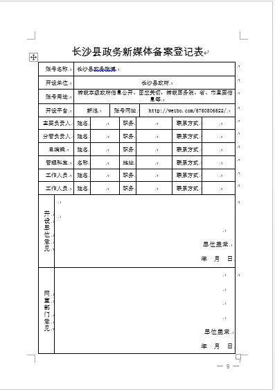 第五條 全縣各鎮(zhèn)(街道)、各部門單位以機構(gòu)名義開設(shè)政務新媒體賬號,應經(jīng)本單位主要領(lǐng)導批準,并在10個工作日內(nèi)向縣網(wǎng)宣辦備案(備案登記表附后)。賬號名稱應簡潔、直觀、規(guī)范,頭像應鮮明、端莊、文明,按要求完善認證信息。