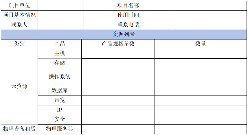政務(wù)云資源申請表