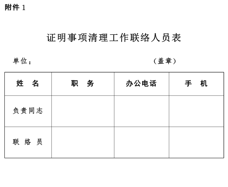 附件:1.證明事項清理工作聯(lián)絡人員表