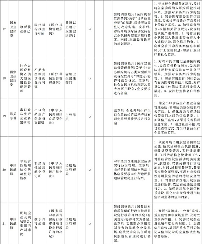 (五)堅持依法推進改革。按照重大改革于法有據(jù)的要求,依照法定程序開展相關(guān)工作。國務院決定,根據(jù)《全國人民代表大會常務委員會關(guān)于授權(quán)國務院在自由貿(mào)易試驗區(qū)暫時調(diào)整適用有關(guān)法律規(guī)定的決定》,3年內(nèi)在各自由貿(mào)易試驗區(qū)暫時調(diào)整適用《中華人民共和國對外貿(mào)易法》等6部法律有關(guān)規(guī)定;同時,在各自由貿(mào)易試驗區(qū)暫時調(diào)整適用《中華人民共和國認證認可條例》等6部行政法規(guī)和《國務院對確需保留的行政審批項目設定行政許可的決定》(國務院令第412號公布,國務院令第548號、第671號修訂)有關(guān)規(guī)定(見附件2)。國務院有關(guān)部門和有關(guān)地方人民政府要根據(jù)法律、行政法規(guī)、國務院決定的調(diào)整情況,及時對本部門和本地區(qū)制定的規(guī)章、規(guī)范性文件作相應調(diào)整,建立與試點要求相適應的管理制度。對試點證明行之有效的改革舉措,要及時推動有關(guān)法律、法規(guī)、規(guī)章的立改廢釋,固化改革成果。