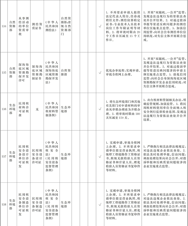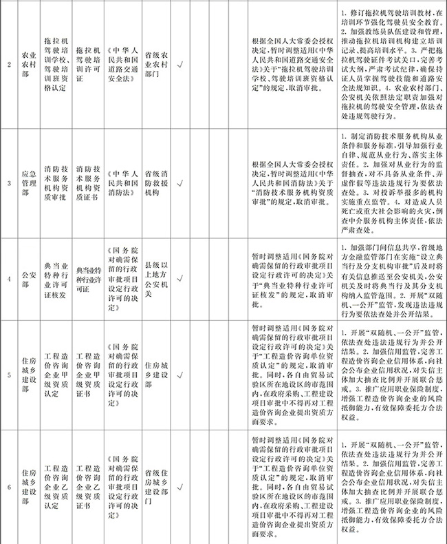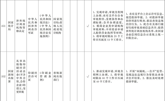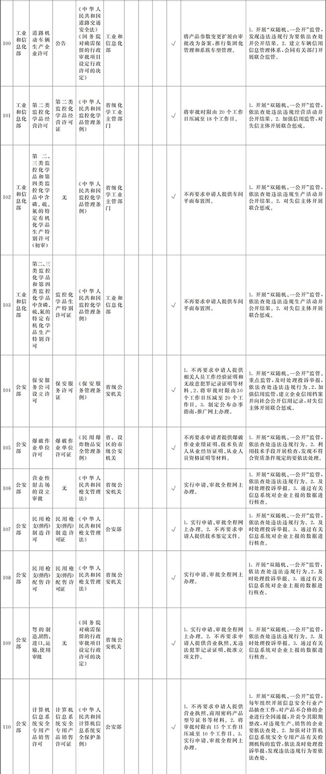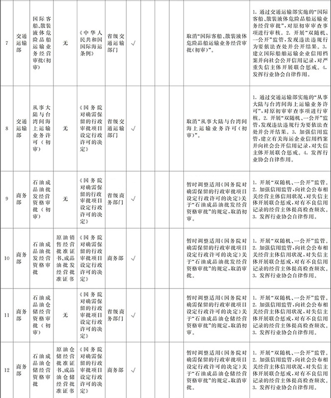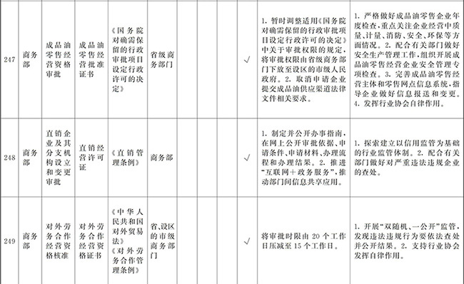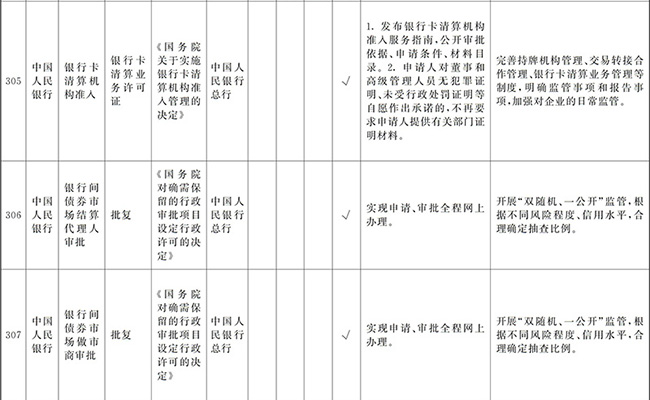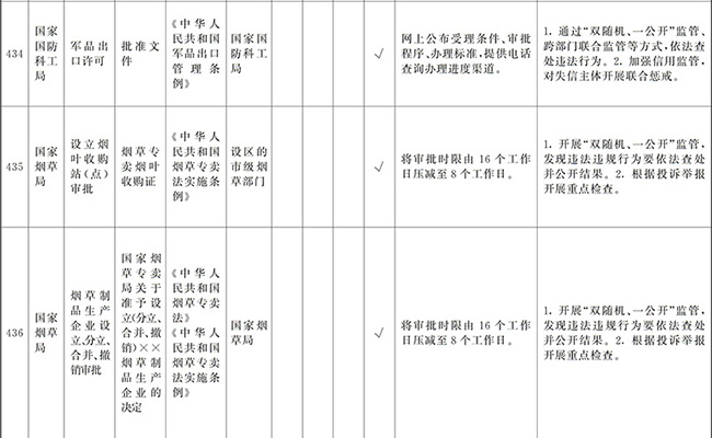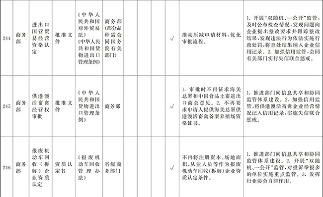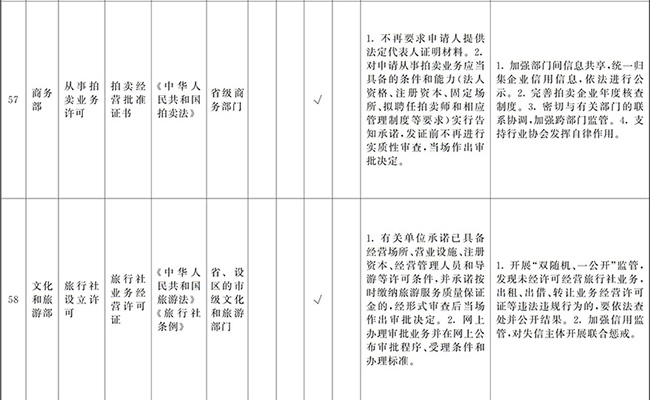 ?。ㄒ唬┲苯尤∠麑徟?。對設定必要性已不存在、市場機制能夠有效調(diào)節(jié)、行業(yè)組織或中介機構(gòu)能夠有效實現(xiàn)行業(yè)自律管理、通過事中事后監(jiān)管能夠有效規(guī)范的涉企經(jīng)營許可事項,直接取消審批。