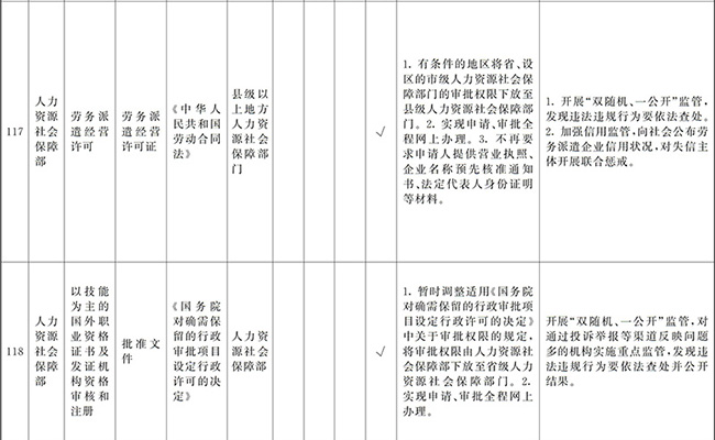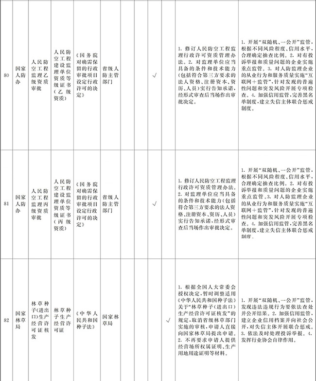 ?。ǘ┓旨墝嵤┣鍐喂芾怼7?、行政法規(guī)、國務院決定設定(以下統(tǒng)稱中央層面設定)的涉企經(jīng)營許可事項清單(見附件1)的調(diào)整,由國務院審改辦商有關(guān)部門提出并按程序報批。地方性法規(guī)、地方政府規(guī)章設定(以下統(tǒng)稱地方層面設定)的涉企經(jīng)營許可事項清單,由有關(guān)省級人民政府指定部門組織按程序制定,2019年11月30日前以省為單位集中向社會公布。