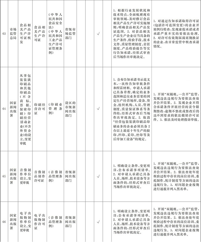 ?。ㄒ唬┙⑶鍐喂芾碇贫取R凑铡白C照分離”改革全覆蓋要求,將涉企經(jīng)營許可事項全部納入清單管理,逐項列明事項名稱、設定依據(jù)、審批層級和部門、改革方式、具體改革舉措、加強事中事后監(jiān)管措施等內(nèi)容。清單要定期調(diào)整更新并向社會公布,接受社會監(jiān)督。清單之外不得違規(guī)限制企業(yè)(含個體工商戶、農(nóng)民專業(yè)合作社,下同)進入相關(guān)行業(yè)或領(lǐng)域,企業(yè)取得營業(yè)執(zhí)照即可自主開展經(jīng)營。