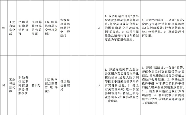 (二)細化實施方案。國務院有關(guān)部門要制定實施方案,對中央層面設定的涉企經(jīng)營許可事項逐項細化改革舉措,明確加強事中事后監(jiān)管的具體辦法,壓實監(jiān)管責任。有關(guān)省級人民政府要組織制定本地區(qū)試點實施方案,明確地方層面設定的涉企經(jīng)營許可事項的改革方式,細化改革試點落地措施。有關(guān)地區(qū)和部門實施方案應于2019年11月30日前向社會公布,并報國務院推進政府職能轉(zhuǎn)變和“放管服”改革協(xié)調(diào)小組辦公室備案。