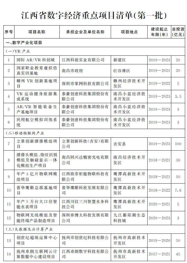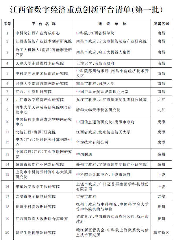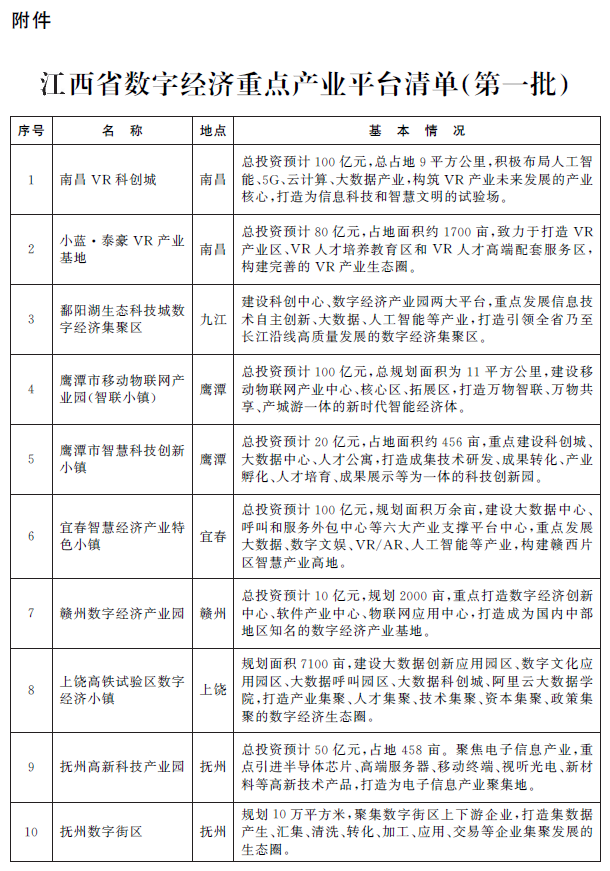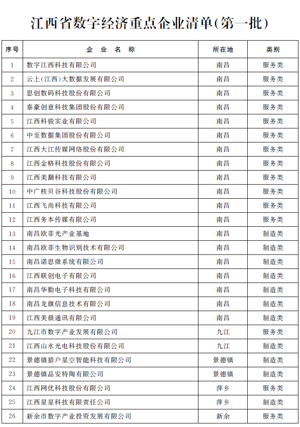 附件:江西省數(shù)字經(jīng)濟(jì)重點(diǎn)產(chǎn)業(yè)平臺、重點(diǎn)項(xiàng)目、重點(diǎn)創(chuàng)新平臺、重點(diǎn)企業(yè)清單(第一批)