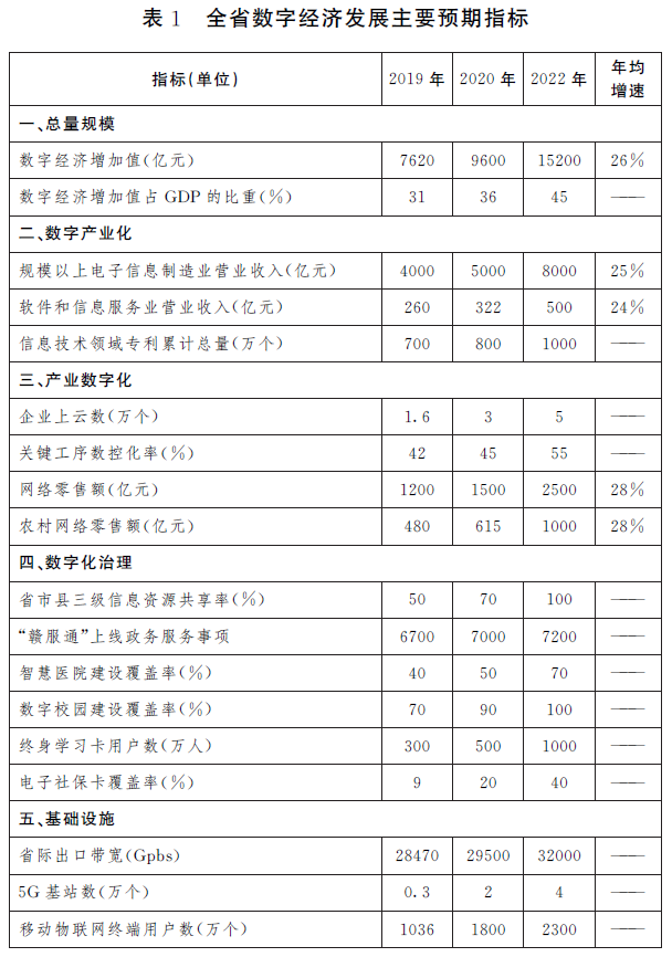 江西省數(shù)字經(jīng)濟(jì)發(fā)展三年行動計(jì)劃(2020-2022年)