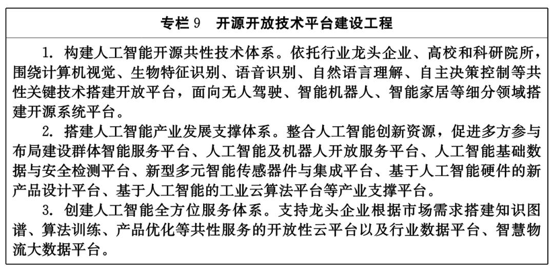 整體提升人工智能行業(yè)創(chuàng)新支撐能力,有效降低中小微企業(yè)研發(fā)成本,支持企業(yè)聯(lián)合高校、科研院所建設(shè)產(chǎn)學(xué)研用協(xié)同創(chuàng)新研發(fā)平臺(tái),搭建數(shù)據(jù)開放平臺(tái)、開源開放共性技術(shù)平臺(tái),鼓勵(lì)各類創(chuàng)新主體建設(shè)行業(yè)公共服務(wù)平臺(tái),促進(jìn)人才要素等創(chuàng)新資源集聚。