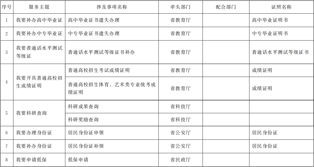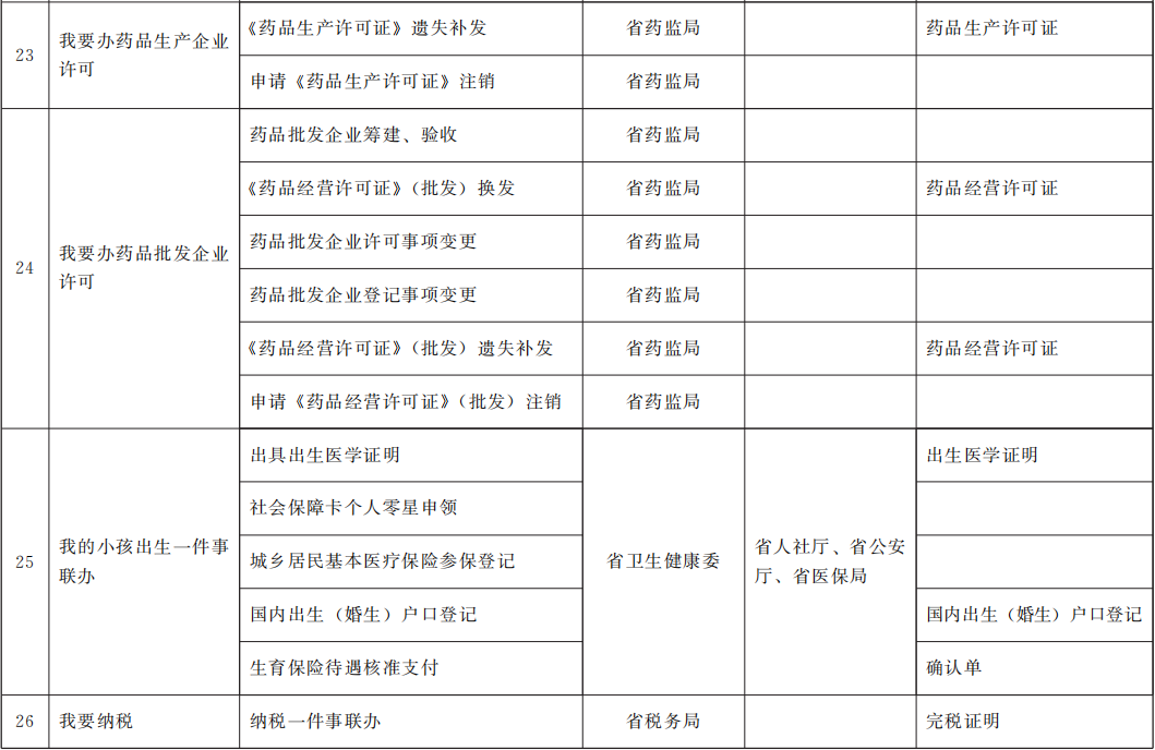 省級第一批“一件事一次辦”事項目錄(30項)