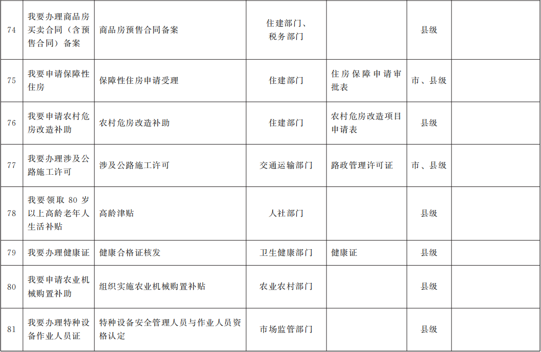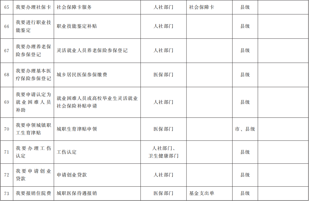 (一)梳理實施事項清單。各地各部門對照行政權力事項和公共服務事項清單,圍繞公安、市場監(jiān)管、教育、醫(yī)療、住房、社保、民政、交通等重點領域,全面梳理辦事頻率高、群眾獲得感強、涉及優(yōu)化營商環(huán)境的“一件事一次辦”事項清單。各市州要按照“成熟一批、公布一批、實施一批”的要求,對照“一件事一次辦”參考目錄,確定首批“一件事一次辦”目錄清單,并在甘肅政務服務網(wǎng)市州子站相關欄目公開展示,結合國家和省級最新要求以及機構改革職能變化,同步調(diào)整更新事項目錄清單。