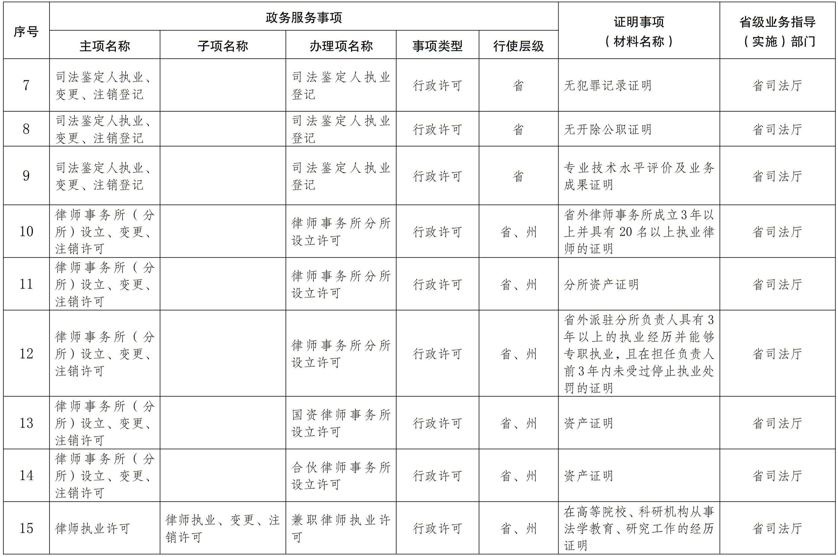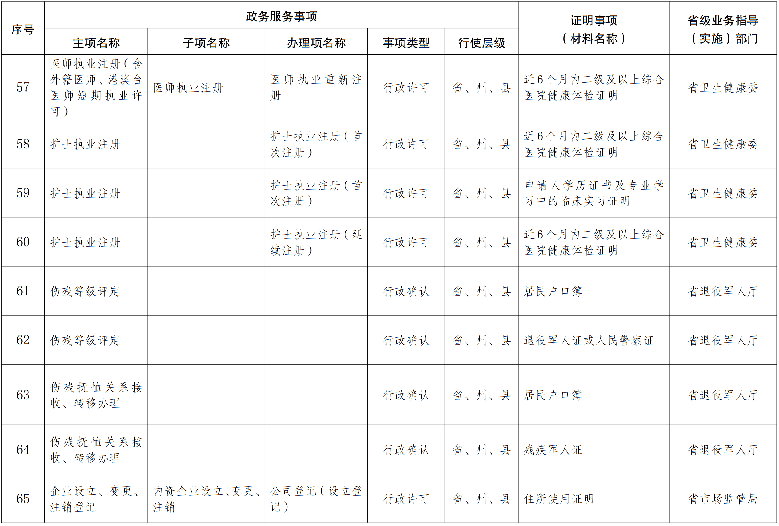 ?。ㄒ唬┲贫ü记鍐危e極穩(wěn)妥有序推進。各地各部門要依托全省網(wǎng)上政務(wù)服務(wù)平臺,按照此次制定公布的第一批104項實行告知承諾制的證明事項清單(附件1),細化任務(wù)分工,全面落實證明事項告知承諾制。省直有關(guān)部門要嚴(yán)格按照證明事項應(yīng)當(dāng)有法律、法規(guī)或者國務(wù)院決定依據(jù)的規(guī)定,聚焦戶籍管理、市場主體準(zhǔn)營、資格考試、社會保險、社會救助、健康體檢、法律服務(wù)等方面,圍繞企業(yè)和群眾生產(chǎn)生活密切相關(guān)、使用頻次較高或者獲取難度較大的證明事項,進一步拓展可實行告知承諾制的證明事項,由省司法廳統(tǒng)一審核后按程序報請公布并動態(tài)調(diào)整。(責(zé)任單位:各州、市人民政府,省直有關(guān)部門;完成時限:2021年12月底)