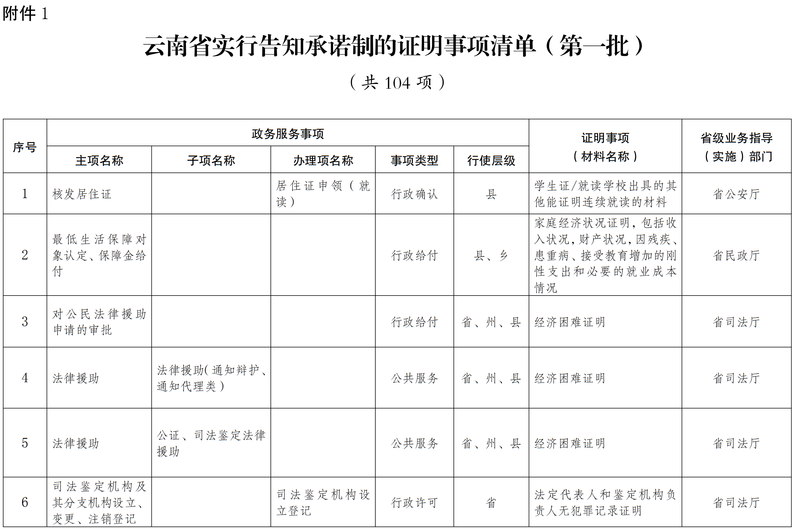 附件:1.云南省實行告知承諾制的證明事項清單(第一批)