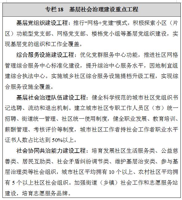 堅(jiān)持黨建引領(lǐng)、重心下移、力量下沉、資源下沉,做強(qiáng)街道(鄉(xiāng)鎮(zhèn))、夯實(shí)社區(qū)(村),構(gòu)建公共服務(wù)圈、群眾自治圈、社會(huì)共治圈,提高城鄉(xiāng)基層治理社會(huì)化、法治化、智能化、專業(yè)化水平。全面推行“街道吹哨、部門報(bào)到,社區(qū)吹哨、黨員報(bào)到”制度,提升街道黨(工)委統(tǒng)籌協(xié)調(diào)、綜合管理能力,增強(qiáng)社區(qū)黨組織政治功能和戰(zhàn)斗力,完善居民小區(qū)治理機(jī)制。強(qiáng)化鄉(xiāng)鎮(zhèn)黨委“龍頭”作用,建立健全以村黨組織為領(lǐng)導(dǎo)、村民自治組織和村務(wù)監(jiān)督組織為基礎(chǔ)、集體經(jīng)濟(jì)組織和農(nóng)民合作組織為紐帶、其他經(jīng)濟(jì)社會(huì)組織為補(bǔ)充的村級(jí)組織體系,減輕基層特別是村級(jí)組織負(fù)擔(dān),建立整頓軟弱渙散村黨組織長(zhǎng)效機(jī)制。健全區(qū)域化黨建工作機(jī)制,完善黨建帶群建制度,擴(kuò)大樓宇、商圈、園區(qū)、市場(chǎng)和互聯(lián)網(wǎng)行業(yè)等新興領(lǐng)域黨的組織覆蓋和工作覆蓋。