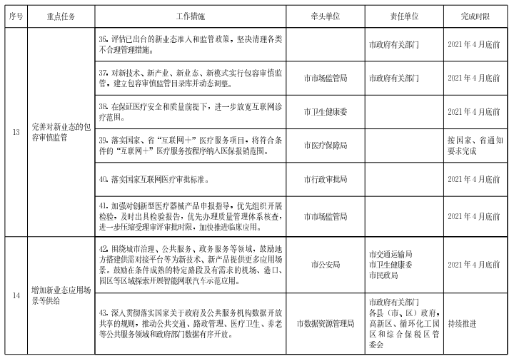 ?。ㄊ┩晟茖π聵I(yè)態(tài)的包容審慎監(jiān)管。評估已出臺的新業(yè)態(tài)準(zhǔn)入和監(jiān)管政策,堅決清理各類不合理管理措施。對新技術(shù)、新產(chǎn)業(yè)、新業(yè)態(tài)、新模式實行包容審慎監(jiān)管,建立包容審慎監(jiān)管目錄庫并動態(tài)調(diào)整。在保證醫(yī)療安全和質(zhì)量前提下,進(jìn)一步放寬互聯(lián)網(wǎng)診療范圍。落實國家、省“互聯(lián)網(wǎng)十"醫(yī)療服務(wù)項目,符合條件的互聯(lián)網(wǎng)醫(yī)療服務(wù)按程序納入醫(yī)保報銷范圍。落實國家互聯(lián)網(wǎng)醫(yī)療審批標(biāo)準(zhǔn)。加強(qiáng)對創(chuàng)新型醫(yī)療器械產(chǎn)品申報指導(dǎo),優(yōu)先組織開展檢驗,及時出具檢驗報告,優(yōu)先辦理質(zhì)量管理體系核查,進(jìn)一步壓縮受理審評審批時限,加快推進(jìn)臨床應(yīng)用。