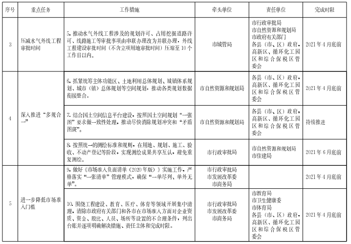 ?。ㄈ簻p水氣外線工程審批時間。推動水氣外線工程涉及的規(guī)劃許可、占用挖掘道路許可、線路施工等審批事項由串聯(lián)辦理改為并聯(lián)辦理,外線工程建設(shè)審批時間(不含立項用地審批時間)壓縮至10個工作日以內(nèi)。