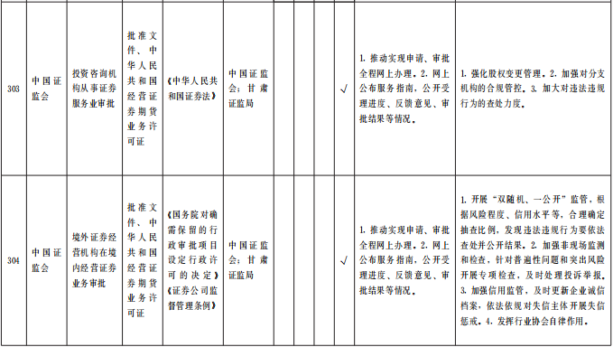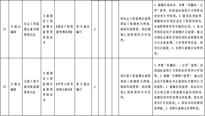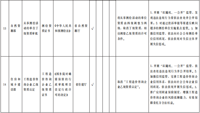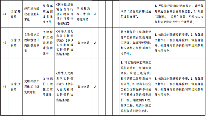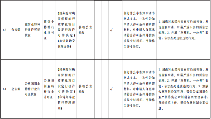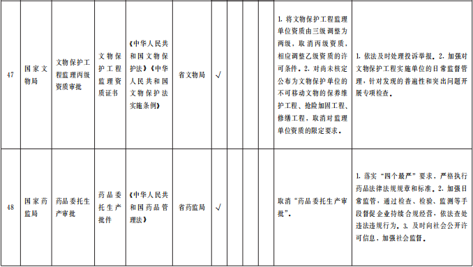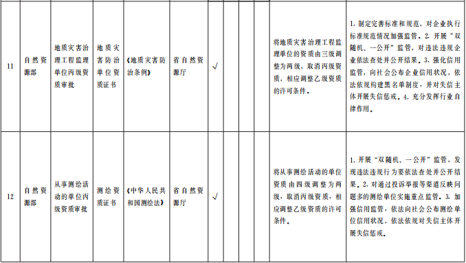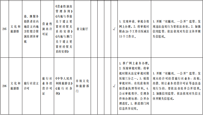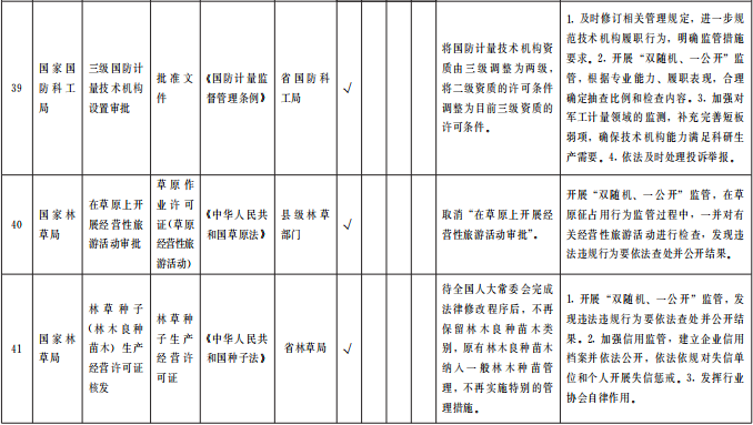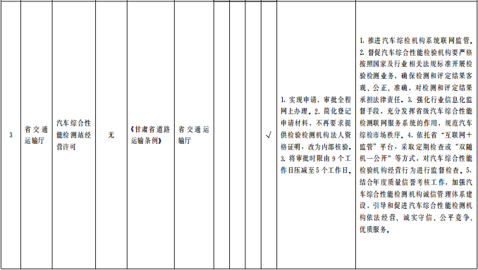 (二)對中央事項清單和省級事項清單實行動態(tài)管理。根據(jù)法律、行政法規(guī)、國務(wù)院決定和地方性法規(guī)、省級政府規(guī)章的立改廢釋,及時調(diào)整落實中央事項清單和省級事項清單。對需調(diào)整改革方式、具體改革舉措、事中事后監(jiān)管措施等重點內(nèi)容的涉企經(jīng)營許可事項,由省級主管部門研究提出調(diào)整意見,經(jīng)省司法廳合法性審核后,報省政府審改辦審定并向社會公布,防止變相審批和違規(guī)限制。(牽頭單位:省司法廳;責(zé)任單位:省直有關(guān)部門、中央在甘有關(guān)單位)