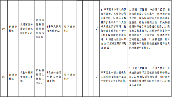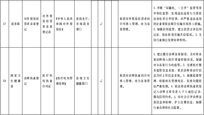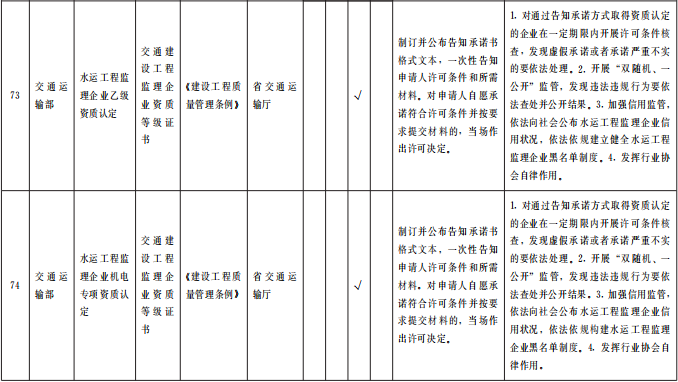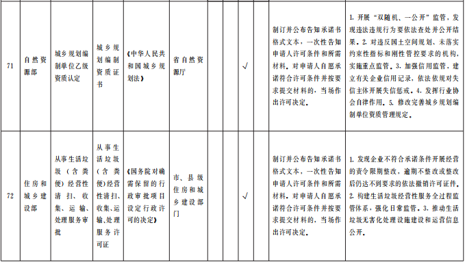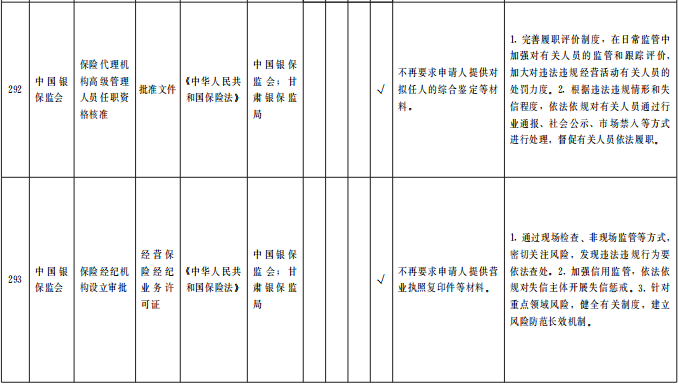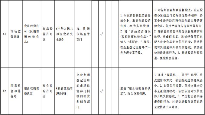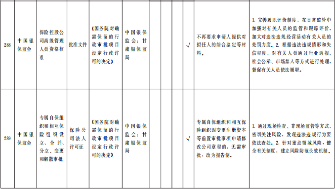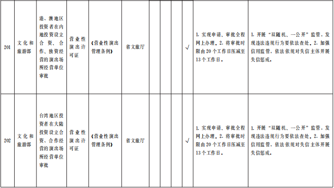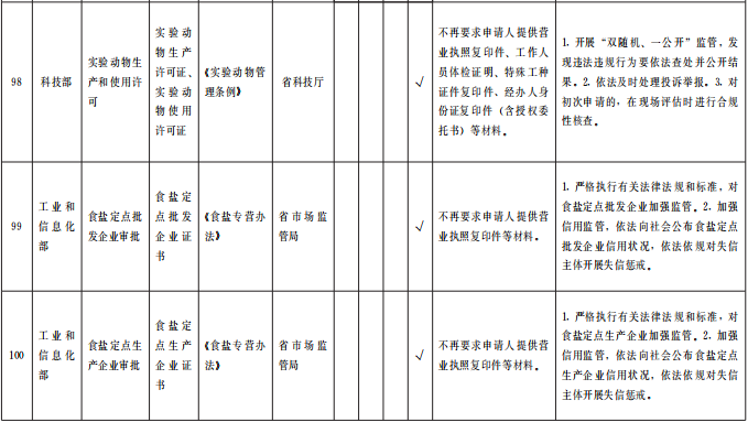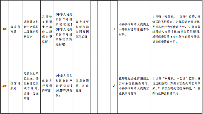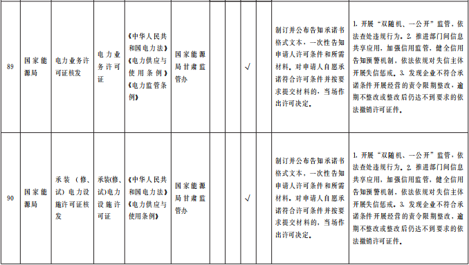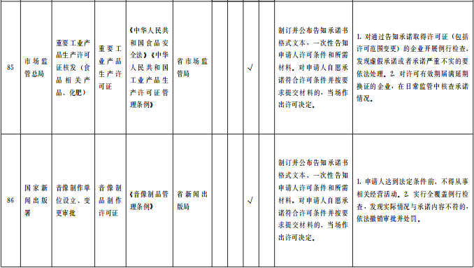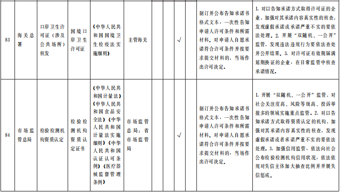 ?。ㄒ唬┲苯尤∠麑徟?。對中央事項清單中52項直接取消審批的涉企經(jīng)營許可事項,企業(yè)持有營業(yè)執(zhí)照即可開展經(jīng)營,各級主管部門不再開展審批、不再出具相關(guān)行政許可證。國家層面改革政策和標(biāo)準(zhǔn)未正式發(fā)布的,要做好銜接工作,確保改革平穩(wěn)過渡。(責(zé)任單位:省直有關(guān)部門、中央在甘有關(guān)單位,各市州政府、蘭州新區(qū)管委會)