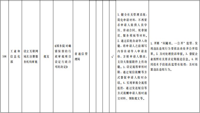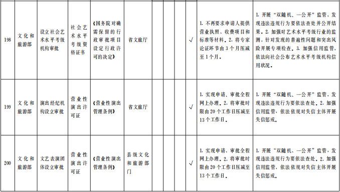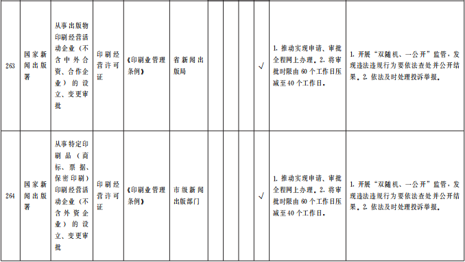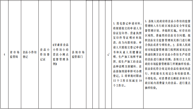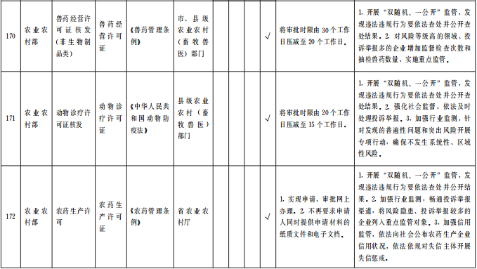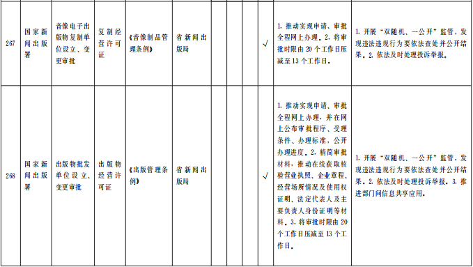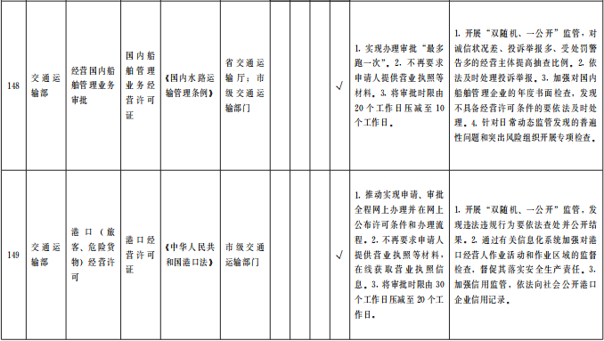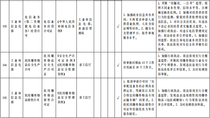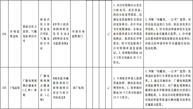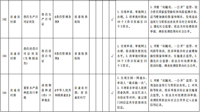 (四)優(yōu)化審批服務(wù)。在全省范圍內(nèi)對263項(中央事項清單256項、省級事項清單7項)涉企經(jīng)營許可事項優(yōu)化審批服務(wù)。各地各部門要采取切實措施,按清單要求辦理。對中央事項清單中調(diào)整審批層級的事項,省直相關(guān)業(yè)務(wù)主管部門要主動加強(qiáng)與國家有關(guān)部委對接,做好承接工作,同時做好對市縣業(yè)務(wù)指導(dǎo)和審批人員培訓(xùn),確保基層接得住、管得好。對精簡許可條件和審批材料的事項,各級各部門間要加強(qiáng)信息共享,減輕企業(yè)辦事負(fù)擔(dān)。對優(yōu)化審批流程的事項,要精簡審批環(huán)節(jié)、壓減審批時限。對設(shè)定了許可證件有效期限的事項,要取消或延長許可證件有效期限,方便企業(yè)持續(xù)開展經(jīng)營。對設(shè)定了許可數(shù)量限制的事項,要取消或合理放寬數(shù)量限制并定期公布總量控制條件、企業(yè)存量、申請排序等情況,鼓勵企業(yè)有序競爭。各地各部門要持續(xù)回應(yīng)企業(yè)關(guān)切,積極探索進(jìn)一步優(yōu)化審批服務(wù)的創(chuàng)新舉措。(責(zé)任單位:省直有關(guān)部門、中央在甘有關(guān)單位,各市州政府、蘭州新區(qū)管委會)