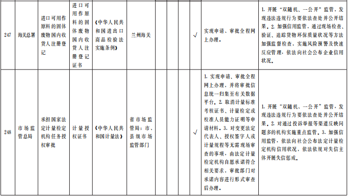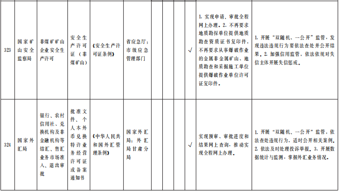 (三)創(chuàng)新監(jiān)管方法。推進(jìn)“互聯(lián)網(wǎng)+監(jiān)管”,省級各主管部門要對照中央和省級事項清單,同步梳理更新本行業(yè)“互聯(lián)網(wǎng)+監(jiān)管”事項清單,確保清單事項內(nèi)容一一對應(yīng)。對國家規(guī)定“一般經(jīng)營事項”的行業(yè)、領(lǐng)域,全面推行“雙隨機(jī)、一公開”監(jiān)管,根據(jù)企業(yè)信用風(fēng)險分類結(jié)果,在日常監(jiān)管中推行對市場主體實行差異化監(jiān)管和常態(tài)化跨部門聯(lián)合抽查,對信用較好、風(fēng)險較低的市場主體,合理降低抽查比例和頻次,為守信企業(yè)減負(fù)。(牽頭單位:省市場監(jiān)管局;責(zé)任單位:省直有關(guān)部門、中央在甘有關(guān)單位,各市州政府、蘭州新區(qū)管委會)