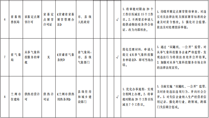 甘肅省地方層面設(shè)定的涉企經(jīng)營許可事項改革清單(2021全省版)