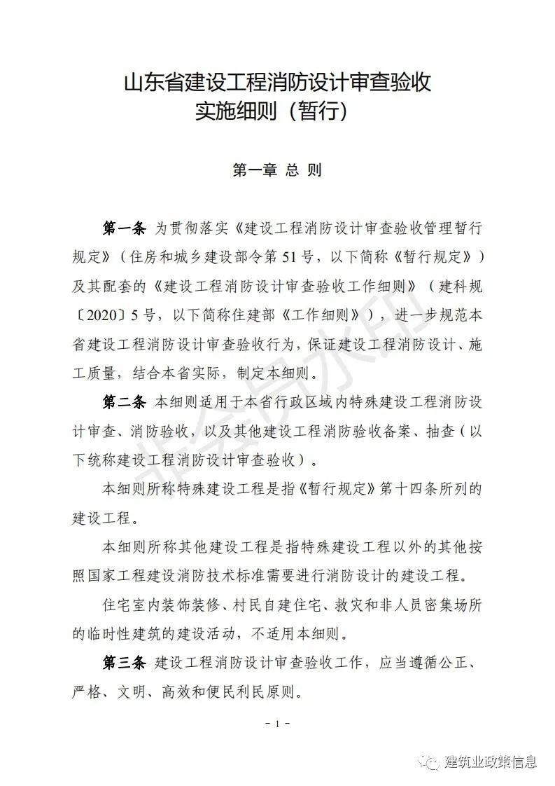 為貫徹落實(shí)《中華人民共和國(guó)消防法》《建設(shè)工程消防設(shè)計(jì)審查驗(yàn)收管理暫行規(guī)定》(住房和城鄉(xiāng)建設(shè)部令第51號(hào))和《建設(shè)工程消防設(shè)計(jì)審查驗(yàn)收工作細(xì)則》(建科規(guī)〔2020〕5號(hào)),進(jìn)一步規(guī)范我省建設(shè)工程消防設(shè)計(jì)審查驗(yàn)收行為,保證建設(shè)工程消防設(shè)計(jì)、施工質(zhì)量,結(jié)合我省實(shí)際,省住房城鄉(xiāng)建設(shè)廳研究制訂了《山東省建設(shè)工程消防設(shè)計(jì)審查驗(yàn)收實(shí)施細(xì)則(暫行)》?,F(xiàn)印發(fā)給你們,請(qǐng)遵照?qǐng)?zhí)行。以往規(guī)定與本通知不一致的,按本通知執(zhí)行。