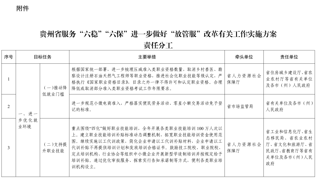 附件:貴州省服務“六穩(wěn)”“六保”進一步做好“放管服”改革有關工作實施方案責任分工