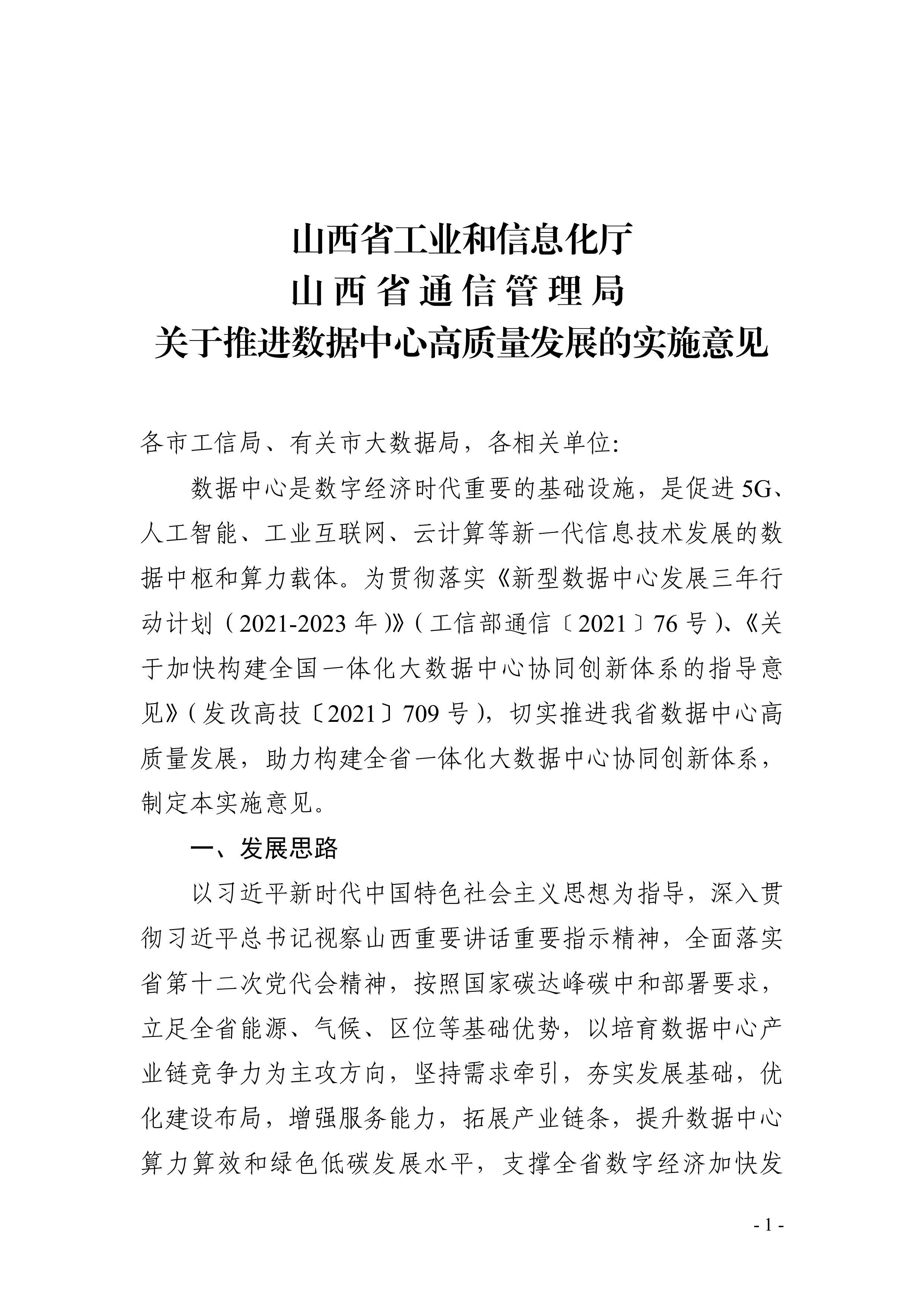山西省工業(yè)和信息化廳 山西省通信管理局 關于推進數(shù)據(jù)中心高質(zhì)量發(fā)展的實施意見 無 分享11 0 附件:關于推進數(shù)據(jù)中心高質(zhì)量發(fā)展的實施意見.pdf