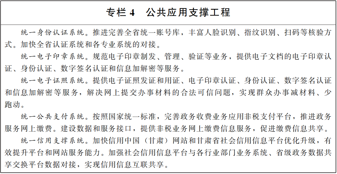 4,建設(shè)公共應(yīng)用支撐體系。按照全省數(shù)字政府統(tǒng)一技術(shù)架構(gòu)體系,建設(shè)應(yīng)用系統(tǒng)基礎(chǔ)支撐體系,為各級(jí)各部門和各類應(yīng)用系統(tǒng)提供公共應(yīng)用支撐保障。