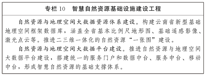 推動自然資源數(shù)字化管理。結(jié)合“多規(guī)合一”成果,建設(shè)全省統(tǒng)一的自然資源與地理空間大數(shù)據(jù)平臺,提供時(shí)空基準(zhǔn)和“一張圖”服務(wù)。完善現(xiàn)有時(shí)空數(shù)據(jù)資源,規(guī)范云南省時(shí)空數(shù)據(jù)基準(zhǔn),建立時(shí)空數(shù)據(jù)管理和更新維護(hù)體系。建設(shè)自然資源全生命周期智慧管控體系,發(fā)展自然資源調(diào)查監(jiān)測評價(jià)、自然資源資產(chǎn)管理、國土空間規(guī)劃與用途管制等自然資源管理服務(wù)應(yīng)用。
