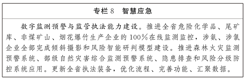 持續(xù)加強(qiáng)智慧應(yīng)急能力建設(shè)。圍繞安全生產(chǎn)、自然災(zāi)害等,建設(shè)全省應(yīng)急通信網(wǎng)絡(luò),接入有關(guān)單位存量通信網(wǎng)絡(luò)資源。綜合物聯(lián)網(wǎng)感知、視頻監(jiān)控等手段,構(gòu)建全域覆蓋的應(yīng)急感知網(wǎng)絡(luò)和數(shù)據(jù)采集體系,建設(shè)應(yīng)急管理綜合應(yīng)用平臺,實(shí)現(xiàn)跨部門和跨層級的業(yè)務(wù)協(xié)同和信息共享。圍繞非煤礦山、危險(xiǎn)化學(xué)品、煙花爆竹等高危行業(yè)安全生產(chǎn)重大風(fēng)險(xiǎn),以及地質(zhì)災(zāi)害、氣象災(zāi)害、水旱災(zāi)害、森林火災(zāi)等自然災(zāi)害風(fēng)險(xiǎn),構(gòu)建風(fēng)險(xiǎn)監(jiān)測指標(biāo)體系和監(jiān)測預(yù)警模型,實(shí)現(xiàn)全要素綜合監(jiān)測、綜合風(fēng)險(xiǎn)評估、災(zāi)害風(fēng)險(xiǎn)預(yù)警、災(zāi)害態(tài)勢智能分析。建立應(yīng)急指揮信息系統(tǒng),實(shí)現(xiàn)應(yīng)急救援智能化、扁平化和一體化指揮作戰(zhàn)。