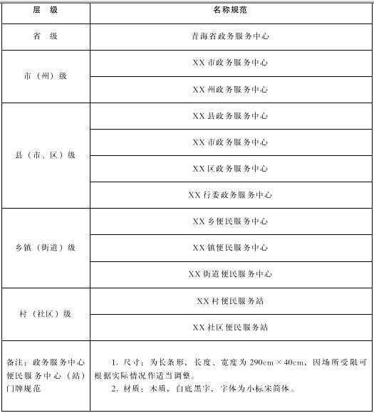 6.規(guī)范政務(wù)服務(wù)場所設(shè)立。各級人民政府要統(tǒng)籌建設(shè)政務(wù)服務(wù)場所,滿足企業(yè)和群眾辦事需求。規(guī)范統(tǒng)一全省政務(wù)服務(wù)場所名稱,省、市(州)、縣(市、區(qū)、行委)為政務(wù)服務(wù)中心,鄉(xiāng)鎮(zhèn)(街道)為便民服務(wù)中心,村(社區(qū))為便民服務(wù)站。鄉(xiāng)鎮(zhèn)(街道)、村(社區(qū))可依托黨群服務(wù)中心開展政務(wù)服務(wù)工作,加掛便民服務(wù)中心(站)牌子。各級政務(wù)服務(wù)中心、便民服務(wù)中心(站)要在顯著位置設(shè)立全省統(tǒng)一的政務(wù)服務(wù)標(biāo)識標(biāo)牌,在青海政務(wù)服務(wù)網(wǎng)各地區(qū)頁面提供政務(wù)服務(wù)地圖,方便辦事群眾識別查找。各部門單設(shè)的政務(wù)服務(wù)窗口原則上應(yīng)整合并入本級政務(wù)服務(wù)中心,確不具備整合條件的,要納入本級政務(wù)服務(wù)中心實(shí)行一體化管理,并接受本級政務(wù)服務(wù)監(jiān)管機(jī)構(gòu)的服務(wù)規(guī)范指導(dǎo),提供規(guī)范化服務(wù),參照本級政務(wù)服務(wù)中心的規(guī)范化管理要求,建立運(yùn)行管理機(jī)制,加強(qiáng)人員管理,做好年度考核工作。(牽頭單位:省政務(wù)服務(wù)監(jiān)管局;責(zé)任單位:省有關(guān)部門,各市州、縣級人民政府;完成時限:2022年底前)
