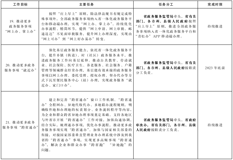 附件:1.《青海省貫徹落實(shí)〈國務(wù)院關(guān)于加快推進(jìn)政務(wù)服務(wù)標(biāo)準(zhǔn)化規(guī)范化便利化的指導(dǎo)意見〉工作方案》任務(wù)分工表