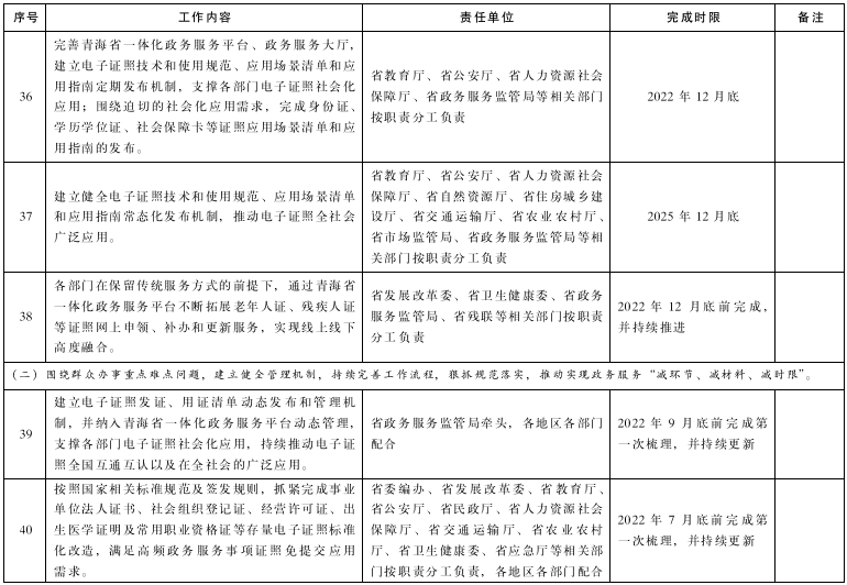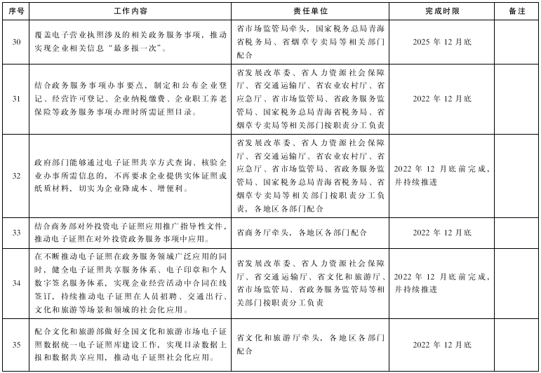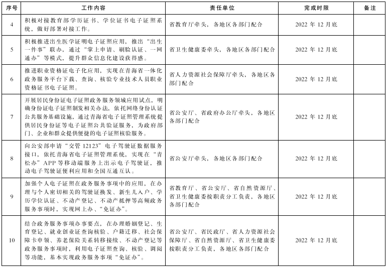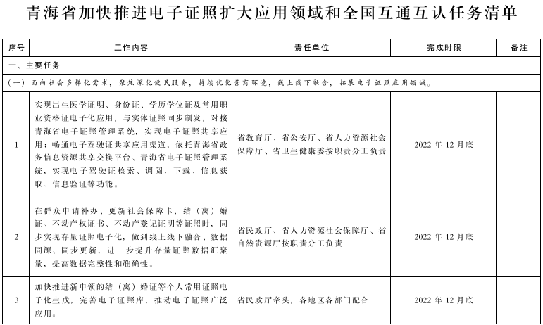 附件:青海省加快推進(jìn)電子證照擴(kuò)大應(yīng)用領(lǐng)域和全國互通互認(rèn)任務(wù)清單