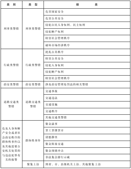 (1)刑事類、治安類、道路交通類警情、案(事)件。