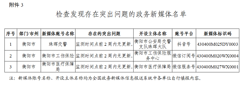 3.檢查發(fā)現(xiàn)存在突出問題的政務新媒體名單