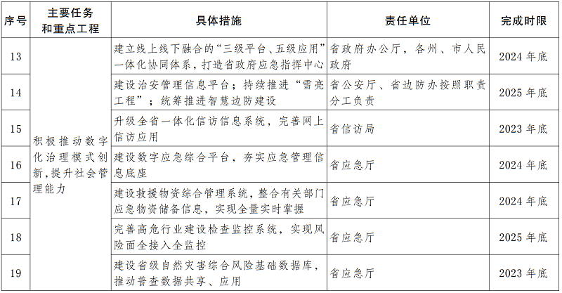 推進(jìn)應(yīng)急管理數(shù)字化應(yīng)用。建設(shè)數(shù)字應(yīng)急綜合平臺(tái),夯實(shí)應(yīng)急管理信息底座。建設(shè)救援物資綜合管理系統(tǒng),整合有關(guān)部門應(yīng)急物資儲(chǔ)備信息,實(shí)現(xiàn)全量實(shí)時(shí)掌握。完善高危行業(yè)建設(shè)檢查監(jiān)控系統(tǒng),實(shí)現(xiàn)風(fēng)險(xiǎn)面全監(jiān)控。建設(shè)省級(jí)自然災(zāi)害綜合風(fēng)險(xiǎn)基礎(chǔ)數(shù)據(jù)庫,推動(dòng)普查數(shù)據(jù)共享應(yīng)用。完善應(yīng)急“一張圖”系統(tǒng)建設(shè),實(shí)現(xiàn)“一圖”數(shù)據(jù)集成、應(yīng)用集成、資源調(diào)度、指揮作戰(zhàn)。完善應(yīng)急智慧窄帶無線通信網(wǎng)絡(luò)和衛(wèi)星電話系統(tǒng)建設(shè)。