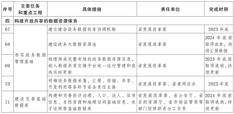 3.數(shù)據(jù)資源體系。健全全省公共數(shù)據(jù)資源目錄,建設(shè)完善數(shù)據(jù)共享交換平臺(tái)、數(shù)據(jù)開放平臺(tái)等設(shè)施;建立健全各類基礎(chǔ)數(shù)據(jù)庫、業(yè)務(wù)資源數(shù)據(jù)庫和相關(guān)專題庫,整合、匯聚各類數(shù)據(jù)資源,構(gòu)建全省共建共享的大數(shù)據(jù)資源體系。