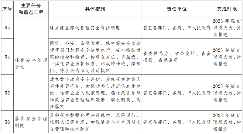 各地各部門按照職責(zé)分工,統(tǒng)籌做好數(shù)字政府建設(shè)安全和保密工作,落實(shí)主體責(zé)任和監(jiān)督責(zé)任。系統(tǒng)建設(shè)部門要建立健全建設(shè)管理安全責(zé)任制度、落實(shí)安全措施建設(shè)要求,網(wǎng)信、公安、密碼管理、保密等安全監(jiān)督管理部門要加強(qiáng)安全制度執(zhí)行、安全措施落實(shí)的指導(dǎo)和檢查,構(gòu)建全方位、多層級(jí)、一體化安全防護(hù)體系,形成跨地域、跨部門、跨層級(jí)的協(xié)同聯(lián)動(dòng)機(jī)制。建立數(shù)字政府安全評(píng)估、責(zé)任落實(shí)和重大事件處置機(jī)制,加強(qiáng)對(duì)參與政府信息化建設(shè)、運(yùn)營(yíng)企業(yè)的規(guī)范管理,確保政務(wù)系統(tǒng)和數(shù)據(jù)安全管理邊界清晰、職責(zé)明確、責(zé)任落實(shí)。