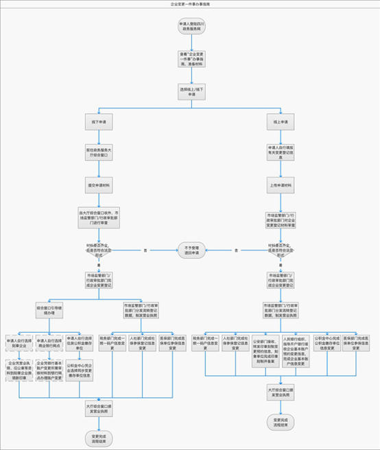 按照辦事方式多元化、辦事流程最優(yōu)化、辦事材料最簡化、辦事成本最小化原則,將各類企業(yè)及農(nóng)民專業(yè)合作社(以下統(tǒng)稱“企業(yè)”)變更登記、印章刻制備案、社會(huì)保險(xiǎn)單位參保信息變更、住房公積金繳存單位信息變更、基本醫(yī)療保險(xiǎn)單位參保信息變更登記(以下簡稱“醫(yī)保單位參保信息變更登記”)、稅務(wù)登記信息變更、銀行基本賬戶信息變更預(yù)約整合辦理。2024年7月1日前上線企業(yè)信息變更“一件事”服務(wù)平臺(tái)(以下簡稱“信息變更服務(wù)平臺(tái)”),通過跨部門數(shù)據(jù)實(shí)時(shí)推送,實(shí)現(xiàn)企業(yè)信息變更“一件事”一站式聯(lián)辦、一體化服務(wù),減少辦事環(huán)節(jié)、申請(qǐng)材料、辦理時(shí)間和跑動(dòng)次數(shù)。